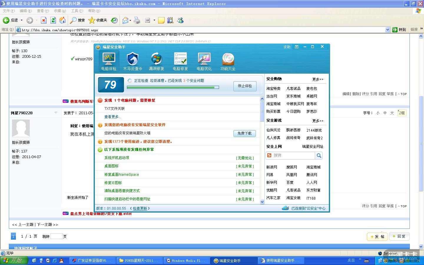 回复:使用瑞星安全助手进行安全检查时的问题。