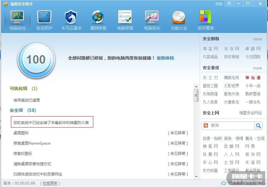 在试用瑞星安全助手的时候,发现了一处BUG,建议更正一下。(如图所示)