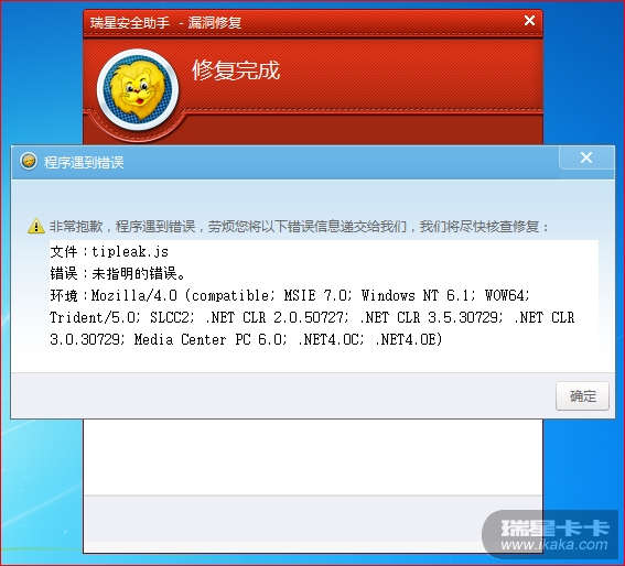 操作系统:windows7 64位旗舰版 IE9+瑞星安全浏览器(02.00.00.15) 瑞星安全助手:01.00.02.37 在未联网下提示:  用户系统信息:Mozilla/4.0 (compatible; MSIE 7.0; Windows NT 6.1; WOW64; Trident/5.0; SLCC2; .NET CLR 2.0.50727; .NET CLR 3.5.30729; .NET CLR 3.0.30729; Media Center PC 6.0; .NET4.0C; .NET4.0E) RSEBROWSER