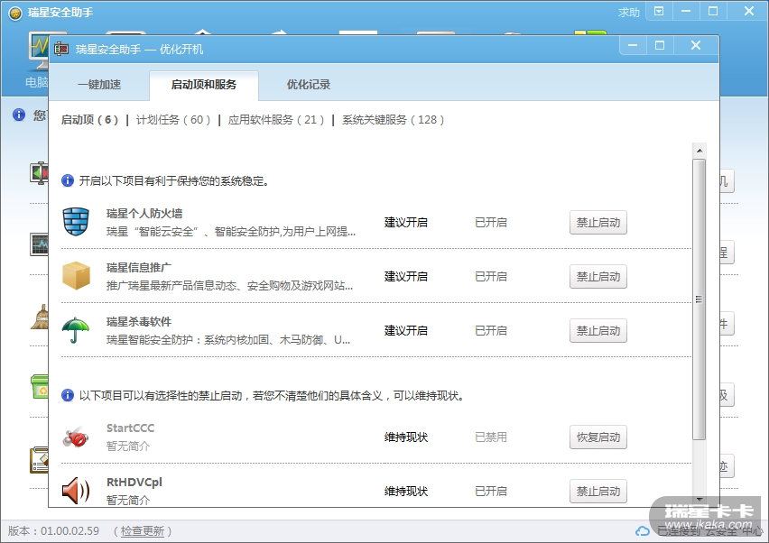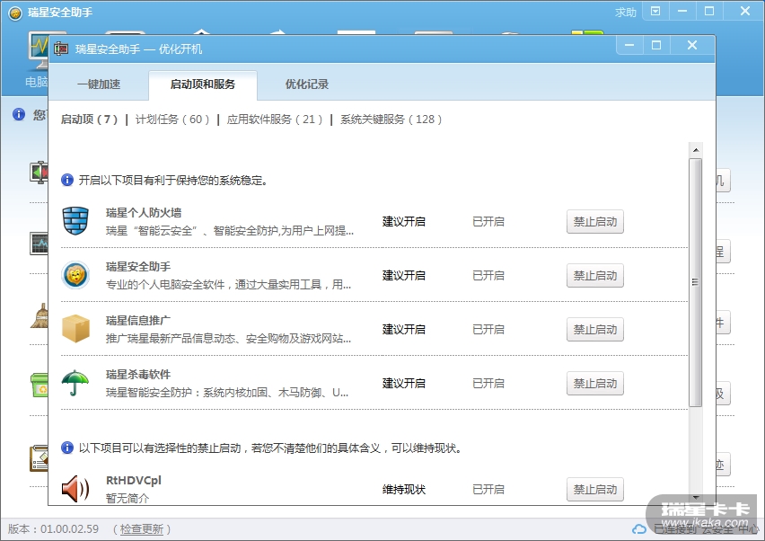 使用瑞星安全助手时,发现安全助手的图标不在“启动项和服务”里,可是它还在开机时自启动当中。这是怎么回事?该怎么解决这种问题?请相关工作人员帮我分析处理,谢谢!(如图所示)