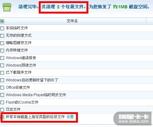 扫描将近1分钟,结果发现2个垃圾文件。点击【清理】按钮又开始扫瞄上了,将近半分钟提示清理完毕!