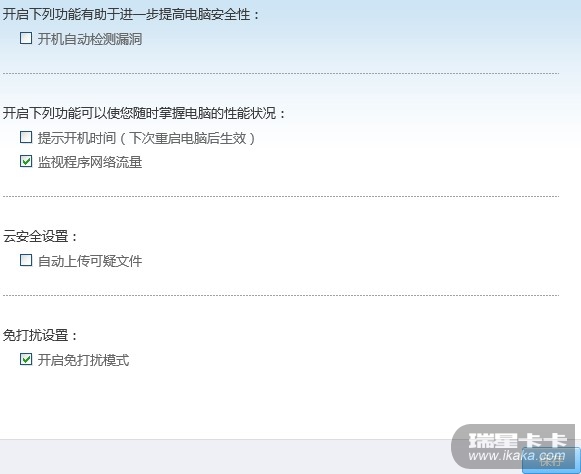 我的设置如我截图;开机自动检测漏洞,这项一选更加,一开机就提示修复漏洞,况且也保存不了,下次再开机,又恢复未选择了。