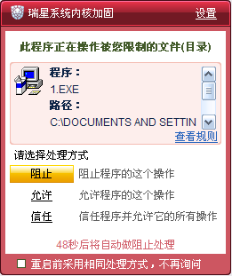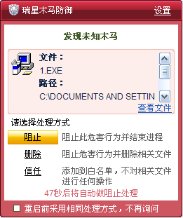瑞星启发引擎提示可疑文件,本次防御成功!