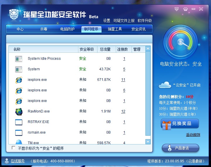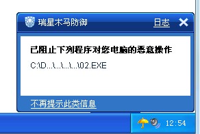 还不错,结束后进程没有消失,但是托盘区的瑞星图标却变黄,但很快又会恢复绿色。