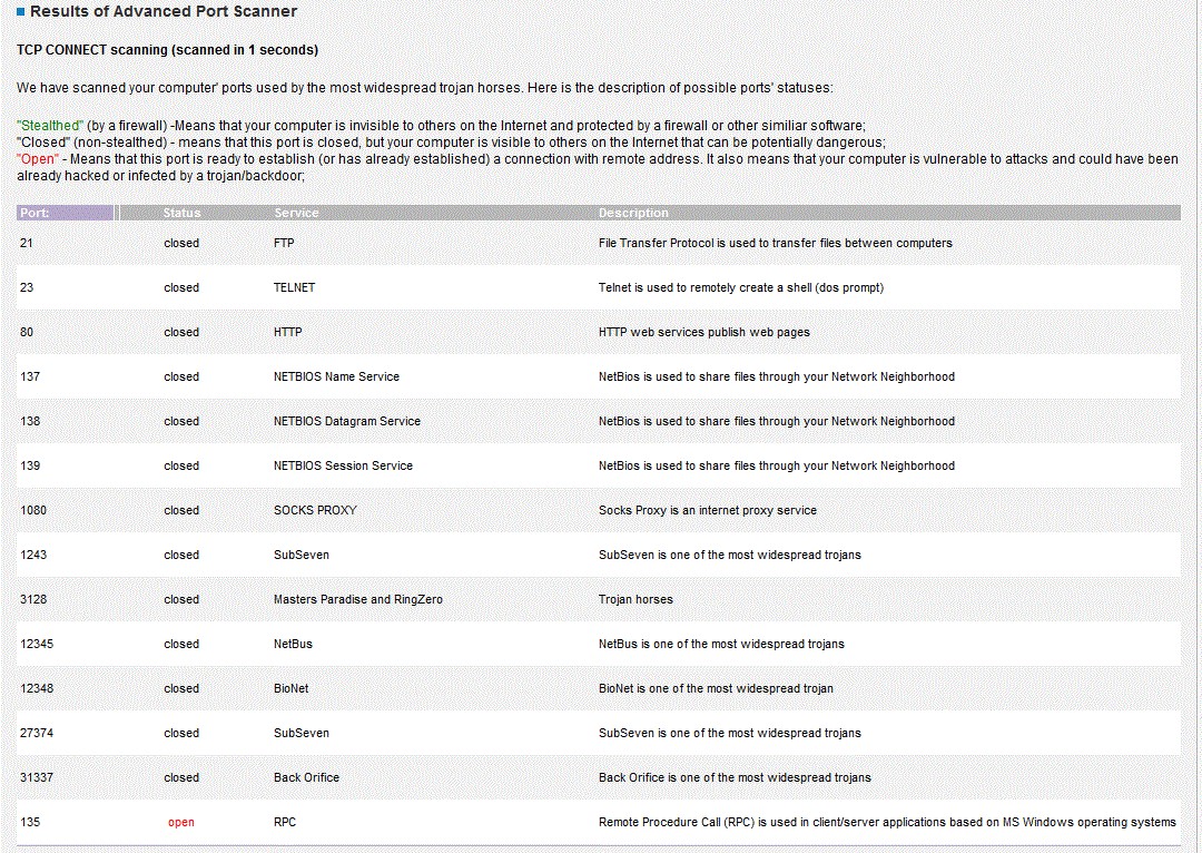 测试网站4(木马端口开放性测试):http://www.pcflank.com/trojans_test1.htm