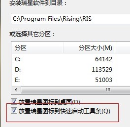WIN7下没快速工具栏,是不是学学QQ安装,根据WIN7设置下瑞星的安装