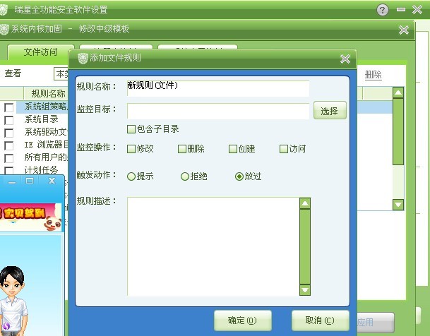 第二就是系统内核加固,在点开新建规则的窗口时同时进行换肤操作,新建规则界面换肤失败。
