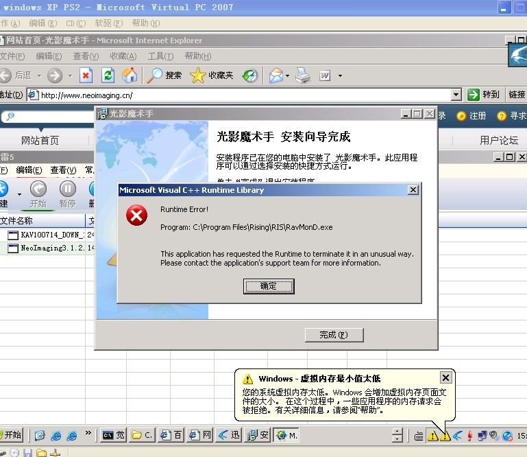 安装光影魔术手之后,RAVMOND进程崩溃~~~[RUNTIME ERROR]