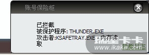问题描述:打开迅雷7后,瑞星帐号保险柜一直拦截(如图)