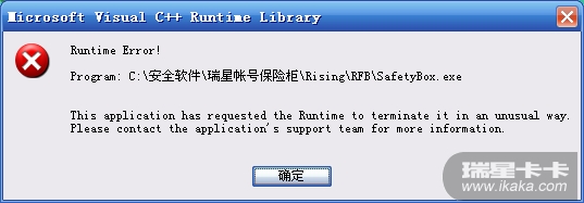 启动后,提示瑞星监控程序“入侵型内存读取”后弹出错误窗口并自动退出!