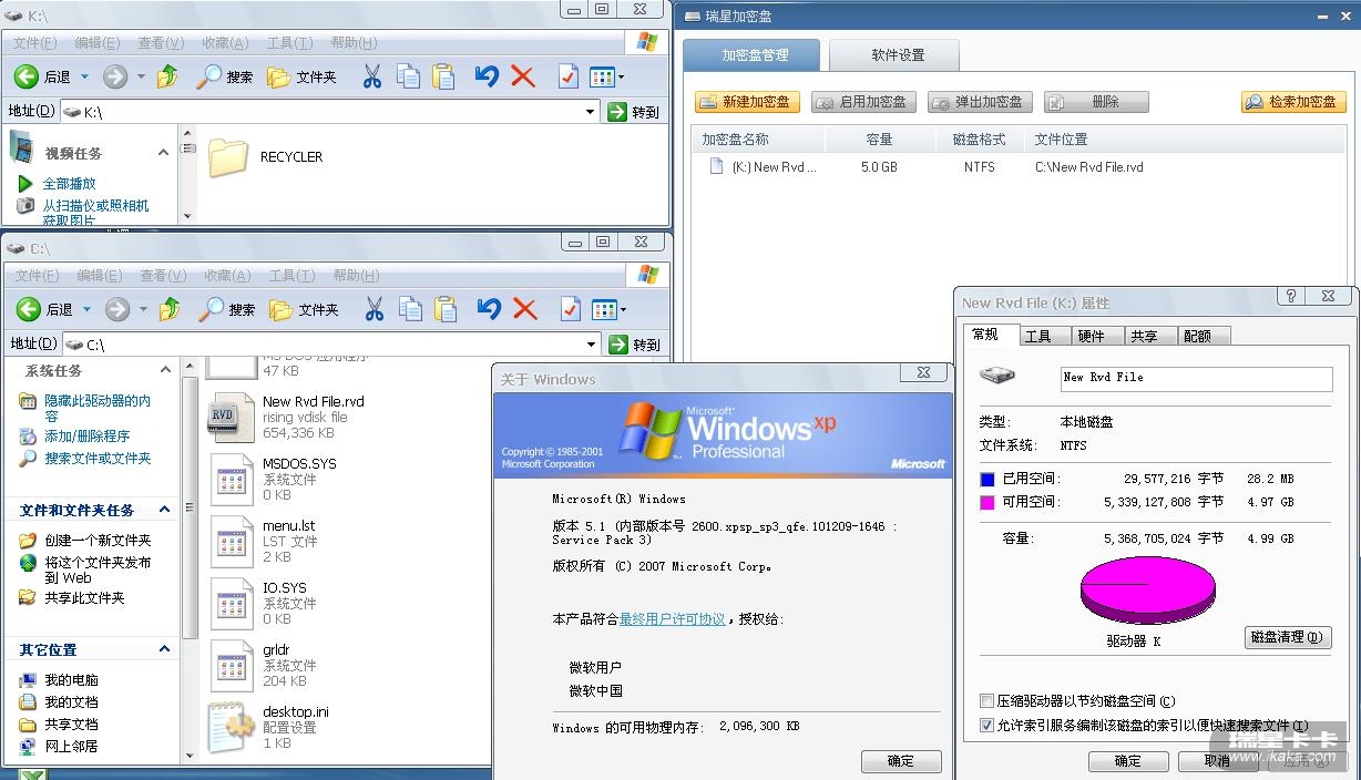 当新建一个密盘文件后,拷贝入较大文件后,然后格式化该密盘,该密盘文件的实际占用量不能减少,也就是不能自动调整。