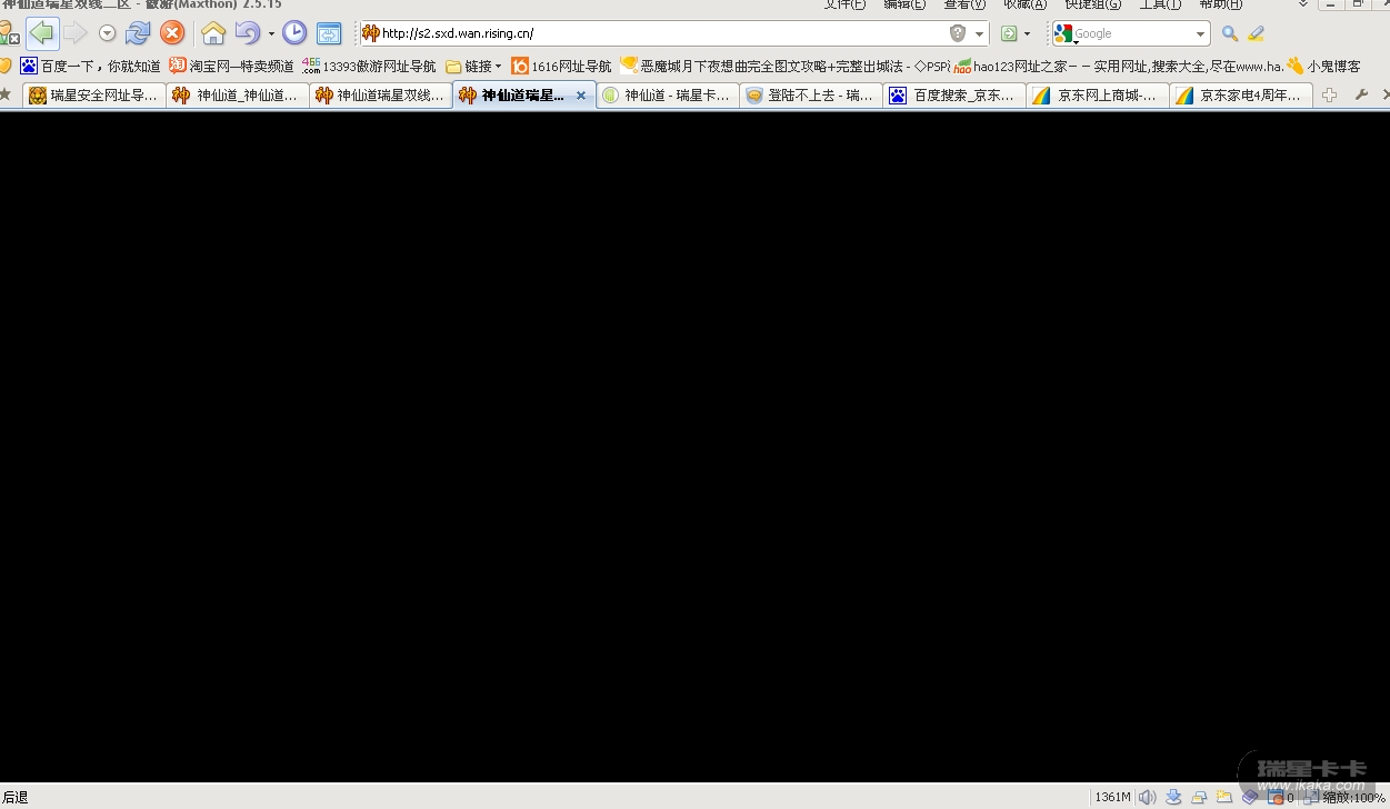 画面一直保持这样黑屏!清理内存 换浏览器 重启都试过了!