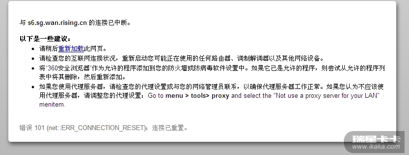 错误 101 (net::ERR_CONNECTION_RESET):连接已重置。