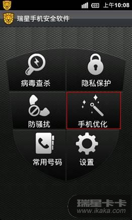 瑞星手机安全软件Android版的“手机优化”图标看起与其它的图标不协调,太零碎,不紧凑。