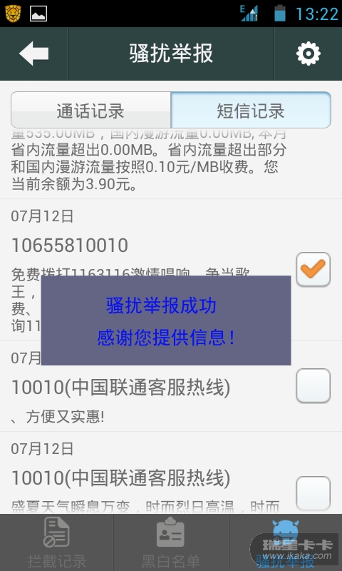 不知道是软件设置如此还是存在问题,骚扰举报设置完成,点击骚扰举报按钮也不提示是否成功提交,因为再次打开骚扰举报,里面也没有保存以前举报过的内容,让人有种举报无门的感觉,也不知道瑞星是否接收到我举报的内容,所以建议如图1、2,选择要举报的内容,点击骚扰举报按钮后,如果提交成功应该有提示更人性化!也更快能丰富瑞星的骚扰拦截库!