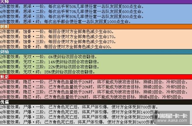 、各职业套装如下: