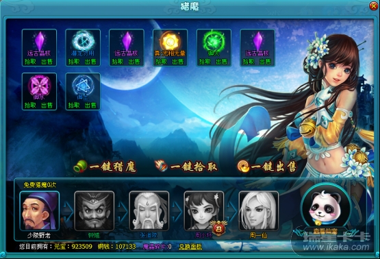 打开【仙宠】面板——最右边的【宠物魔晶】标签页,点击【开始猎魔】按钮,就可以打开【猎魔面板】了。