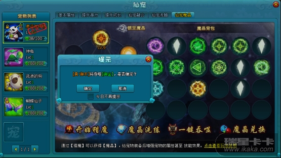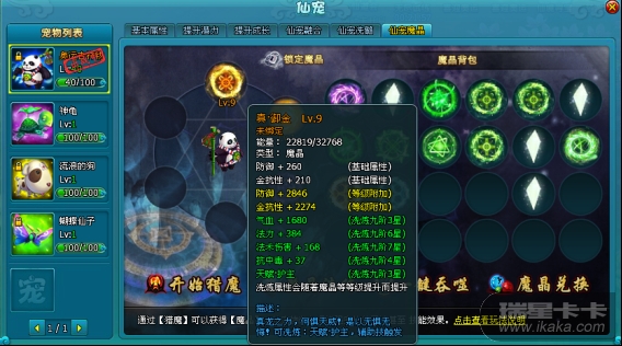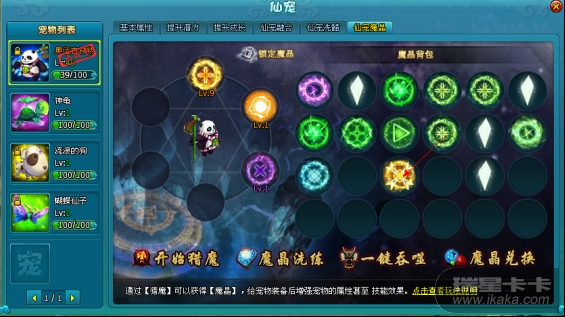 获得魔晶后,只要给宠物装配上,便可激发宠物的灵魂力量。一些