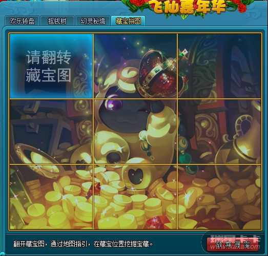 三.残卷寻宝概述:根据可靠消息:神秘藏宝图竟然是妖族秘宝的藏宝图残卷,如果能够解开藏宝图残卷的秘密,根据藏宝图的指引,就能寻找到妖族秘宝。如果你对自己的智慧有信心,那就快来解谜藏宝图残卷,挖取妖族秘宝吧!