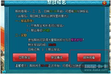 战场祝福进行选择,选择一种战场祝福皮肤后,进入帮战