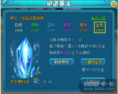 【活动内容】:活动期间,护送寒冰可获得120%的金钱和经验收益!