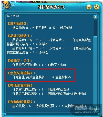 、铸造公式调整为避免玩家误操作,更新后的游戏删除了轩辕鼎中关于