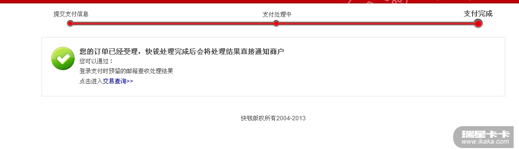 您的订单已经受理,快钱处理完成后会将处理结果直接通知商户