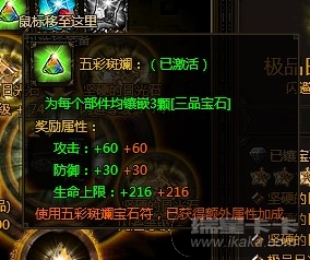 备注:五彩坚硬石*1:使用后,可将防御、暴击、闪避、生命上限四种类型的6品低级宝石全部升级为坚硬的宝石,所有属性翻一倍!只有所有低级宝石达到6级才可使用。已是坚硬的宝石则不会发生变化。该道具有时效限制,获得后需及时使用。