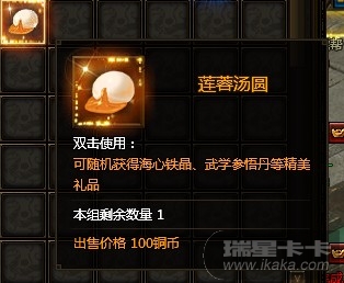 3个莲蓉+1糯米+1白糖 +1水=莲蓉汤圆,活动期间共可兑换15次。