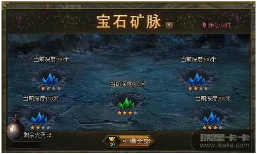 活动奖励:1.每炸一次矿脉,可获得一定数量的宝石奖励 , 同时深度增加