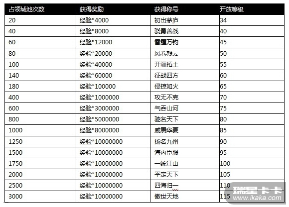 活动内容:占领城池达到一定数量且达到相应的等级即可获得海量经验,还可获得万人景仰的称号