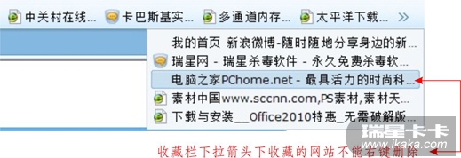 操作步骤:收藏栏下拉箭头下的网址无法使用右键删除