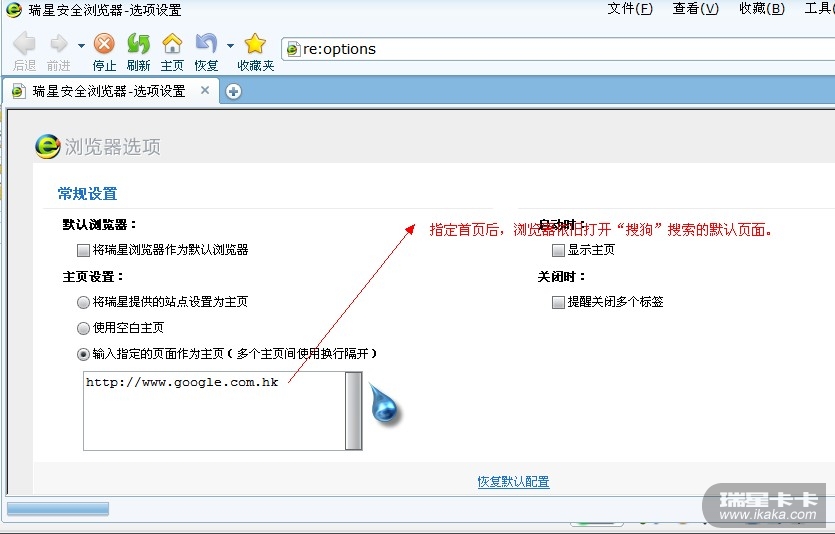 还是手动指定网址的问题,瑞星安全浏览器设置其它项目都会自动出现保存提示。但是手动输入首页后不会出现保存提示,建议当鼠标离开手动指定网址位置后,提示保存设置