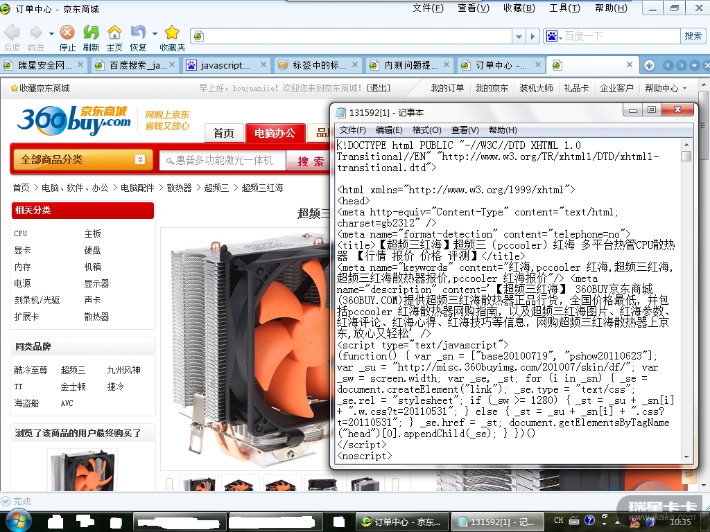 标签中的标题不是源代码title中的信息,附件1中是瑞星浏览器中显示的,附件2是IE9下的,请注意附件1中的代码部分,另外,偶尔还会出现标签中的标题为空的现象。此bug并不是每次都复现,但反复点,复现率相当高,感觉上是在京东上,点击未点击过的商品详细信息页的时候,就会出现