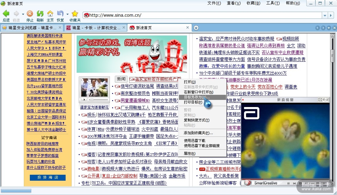 安全浏览器,右键菜单"目标另存为"