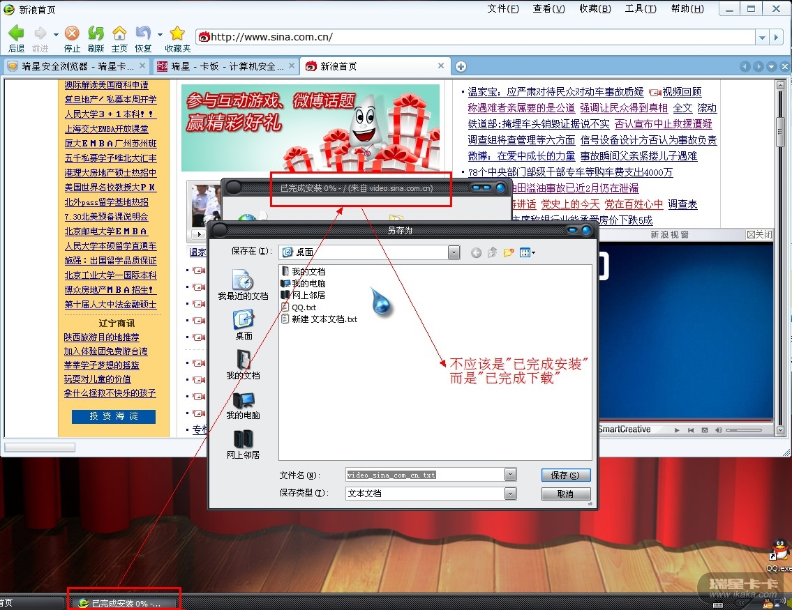 红色框内的文字说明不应该是"已完成安装"而应该是"已完成下载".不要沿用IE错误说明.