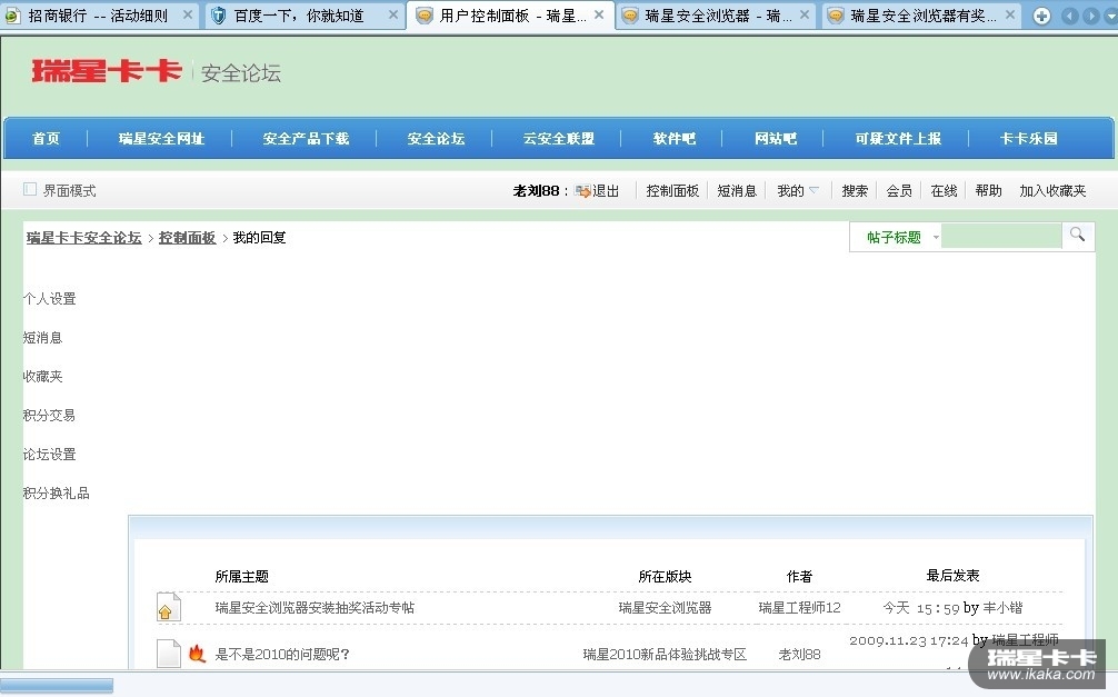 涉及的相关网址:http://bbs.ikaka.com/myposts.aspx