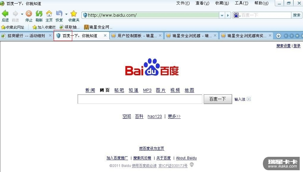 出现问题前的操作步骤:在访问百度之前访问过财付通,直接在财付通页面的地址栏输入了百度的地址,导致百度的图标展示错误,为财付通的图标(见图三中红框)