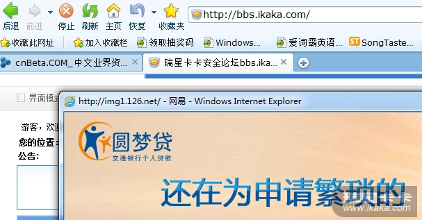 步骤:用安全浏览器登录163邮箱后,直接关闭标签。结果弹出一个广告窗口,该窗口调用的是IE9
