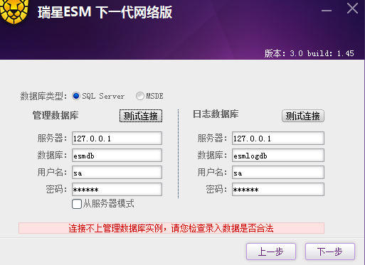 [其他问题] ESM3.0 试用版安装包无法连接数据库
