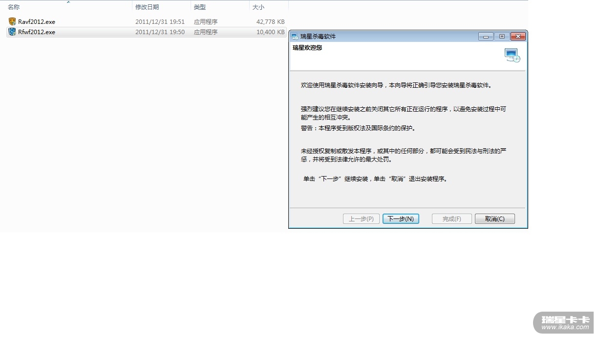 我按工程师的要求不保留用户配置信息,卸载了瑞星杀毒2012,但是直接安装防火墙2012提示如下信息,拒绝安装后准备安装杀毒2012,安装程序不能正常启动,顺便说一下,我的杀毒软件和防火墙是刚刚下载的,我的操作系统是dell win7 64位