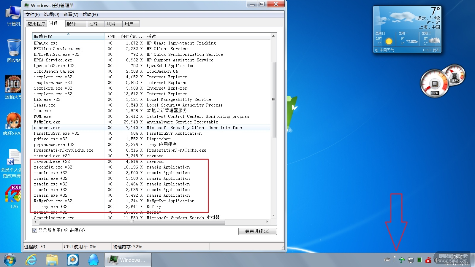 然后我就猛点开始菜单的RFW主程序,结果后台出现4、5个主程序进程,就是不见防火墙主页面跳出来,也不见托盘