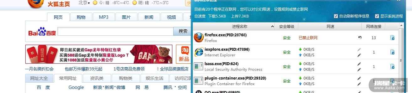 s试了下 在这里禁用下火狐 和QQ 火狐也还能联网啊