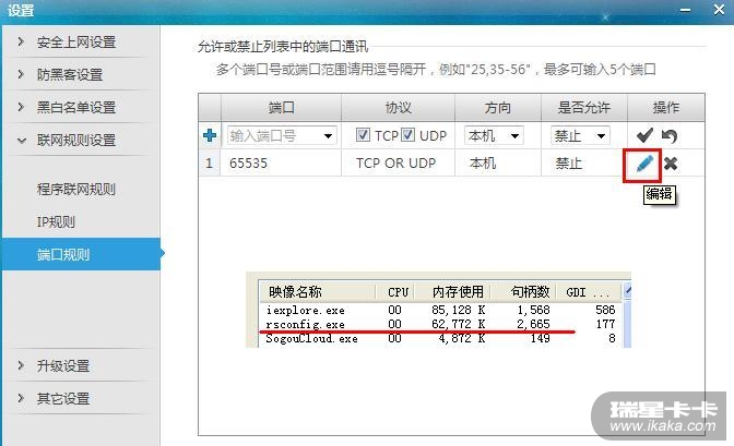 如图,端口规则里面随便添加一项,然后不停点击(10次即可见效)图中红框区域,使其内部重复执行编辑和确定流程,静置3分钟后后看内存占用及句柄数,明显的泄露。