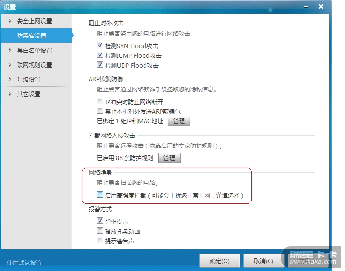 瑞星防火墙开启网络隐身,win8应用商店就连接不上网络!!!