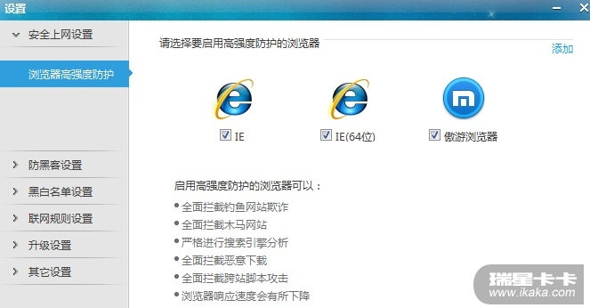 是在防火墙的浏览器高强度防护中,勾选了IE8和maxthon3后,上不了网吗?