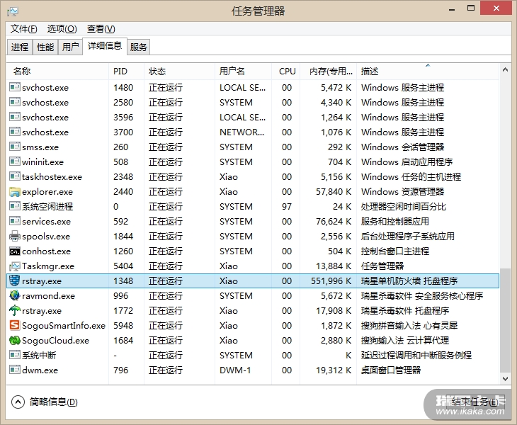 随着开机时间的增加,网络总流量不断增加,防火墙rstray.exe的内存占用会从44MB慢慢增长到几百MB甚至上GB,虽然我内存大不怕你这点占用,可是这样毕竟不好,要考虑一下小内存用户的感受吧。