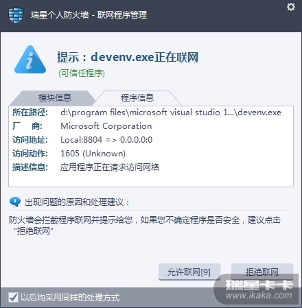 无论什么程序访问网络,所有的访问地址的IP全都是0.0.0.0,访问动作都是“Unknown”