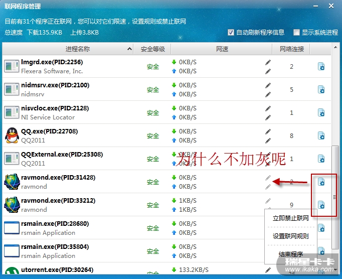 联网程序管理里可杀掉ravmond+卡资源管理器