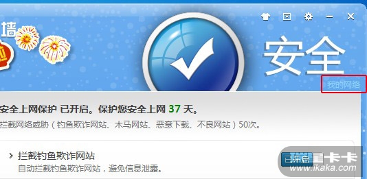打开防火墙主界面,右上方的“我的网络”这个功能在主界面上很不突出(如图),就算换皮肤也觉的不显示,希望能往下点移至主界面的白色区域,